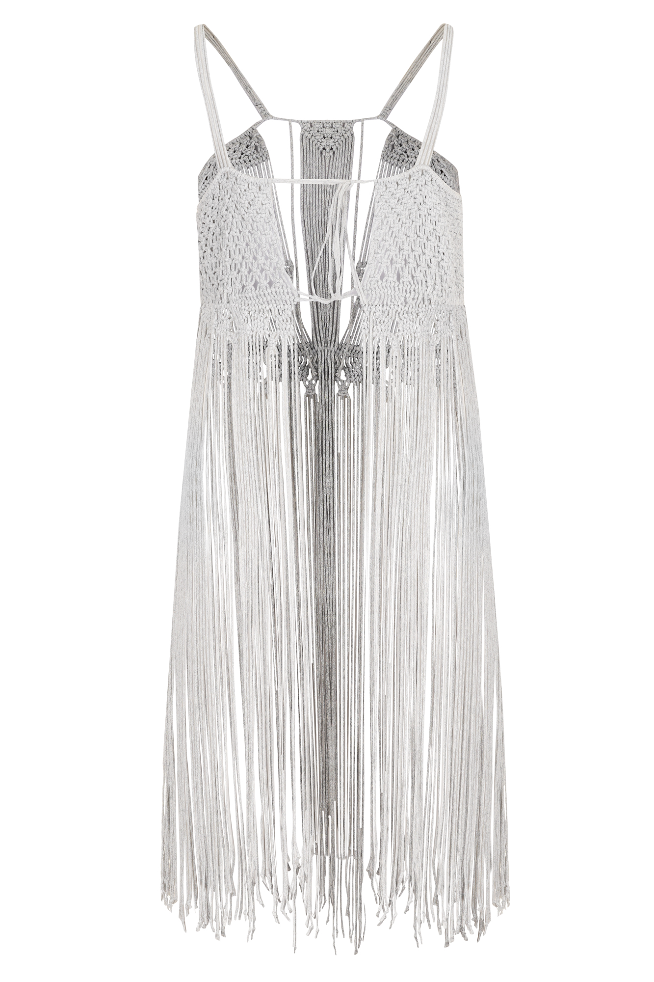 Gray Macramé Magic Dress is a stunning handmade boho fringe dress crafted from 100% ethically sourced cotton. Designed for free-spirited individuals who love elegant yet comfortable fashion, this dress features intricate woven macramé detailing across the bodice and long fringe accents that flow gracefully from the waist to the hem. The deep V-neck and thin shoulder straps add a delicate, feminine touch, while the halter-style tie ensures a perfect, adjustable fit for every body shape.