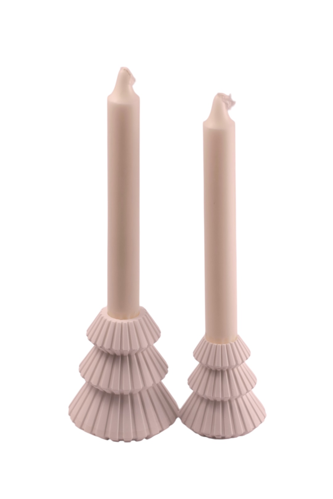 The candle holders are suitable for classic taper candles, providing stability and a graceful presence on a table, shelf, or as part of your holiday décor. The eco plaster offers a beautiful matte finish and a sense of purity and lightness.