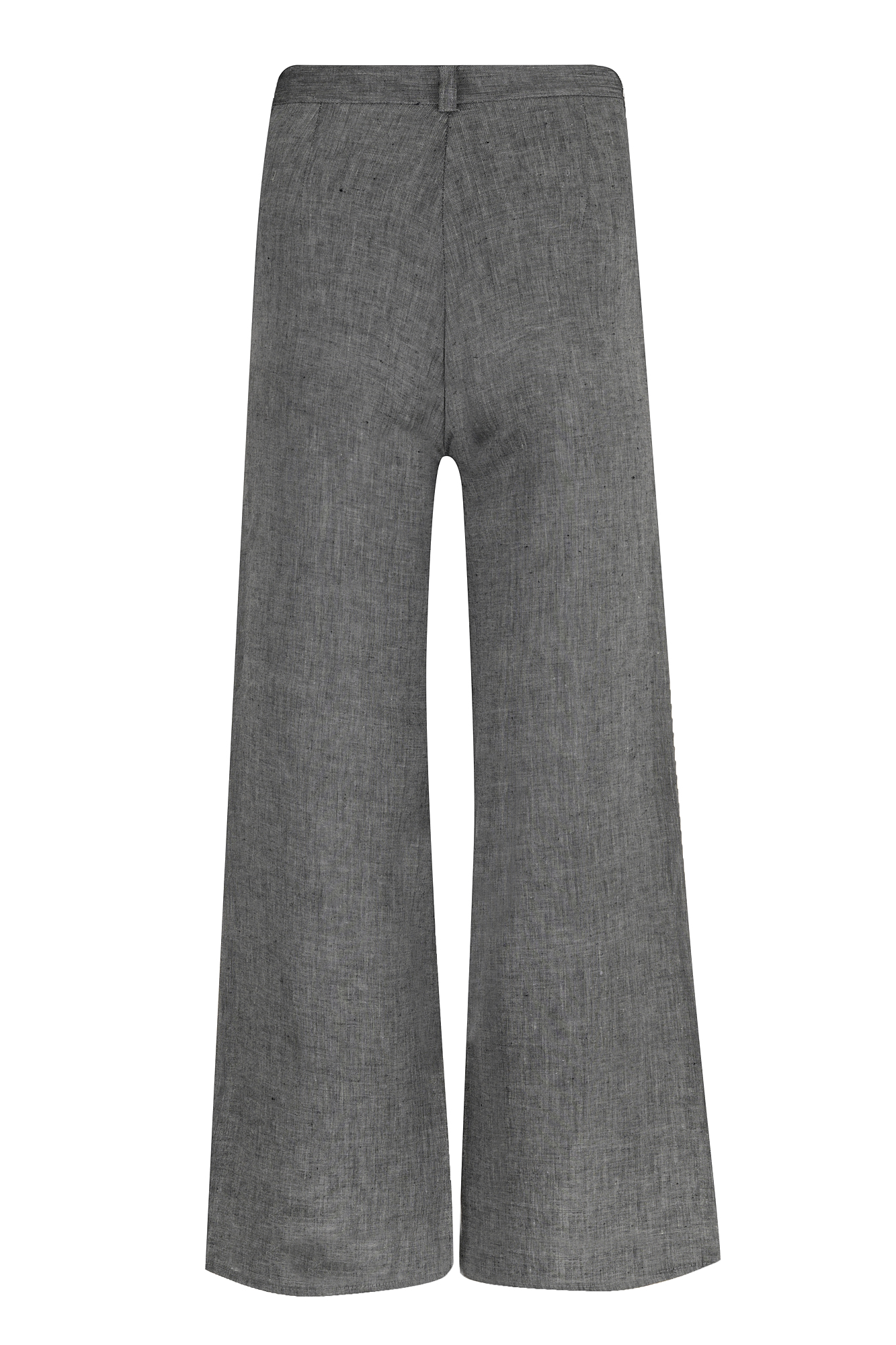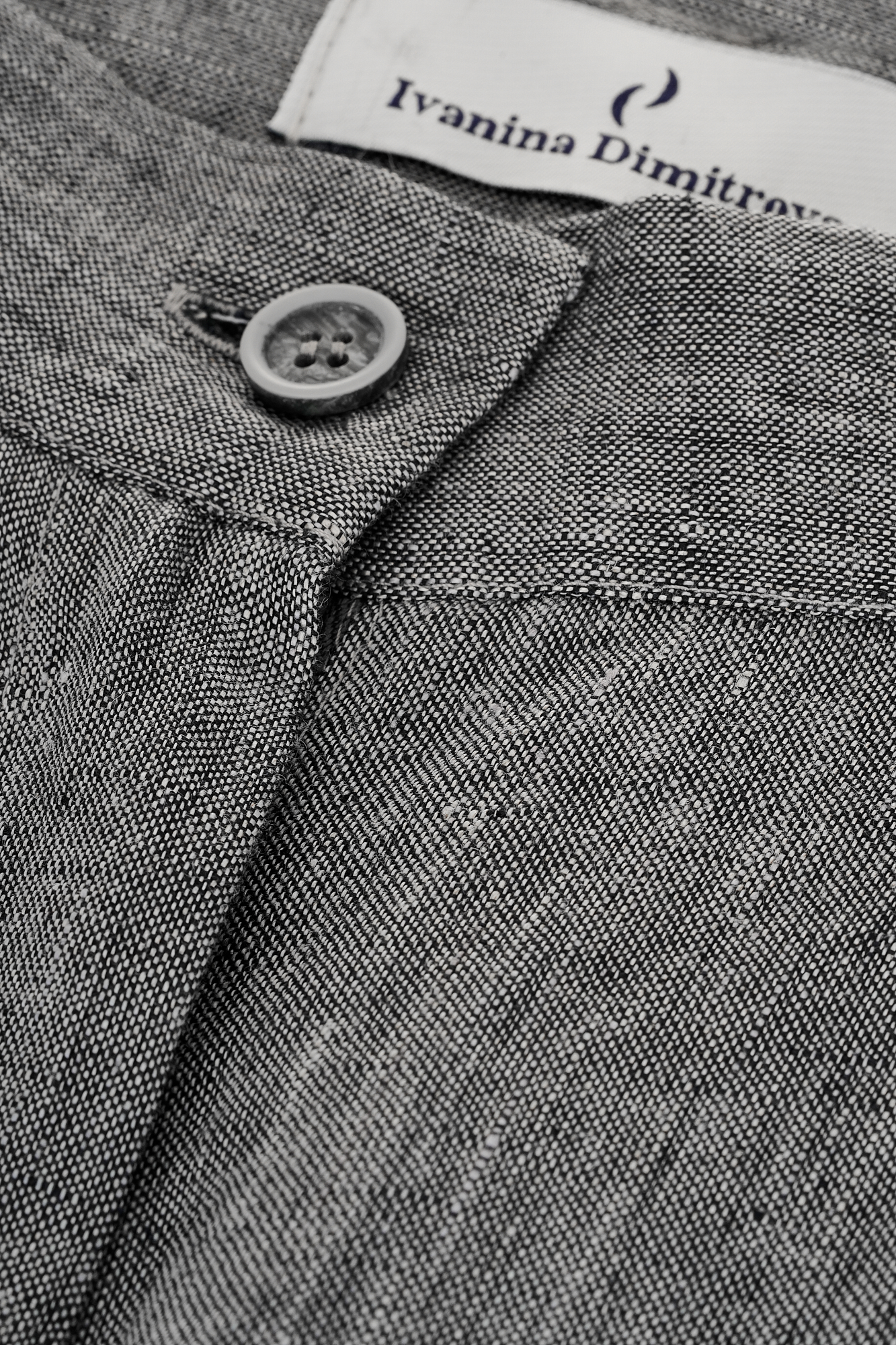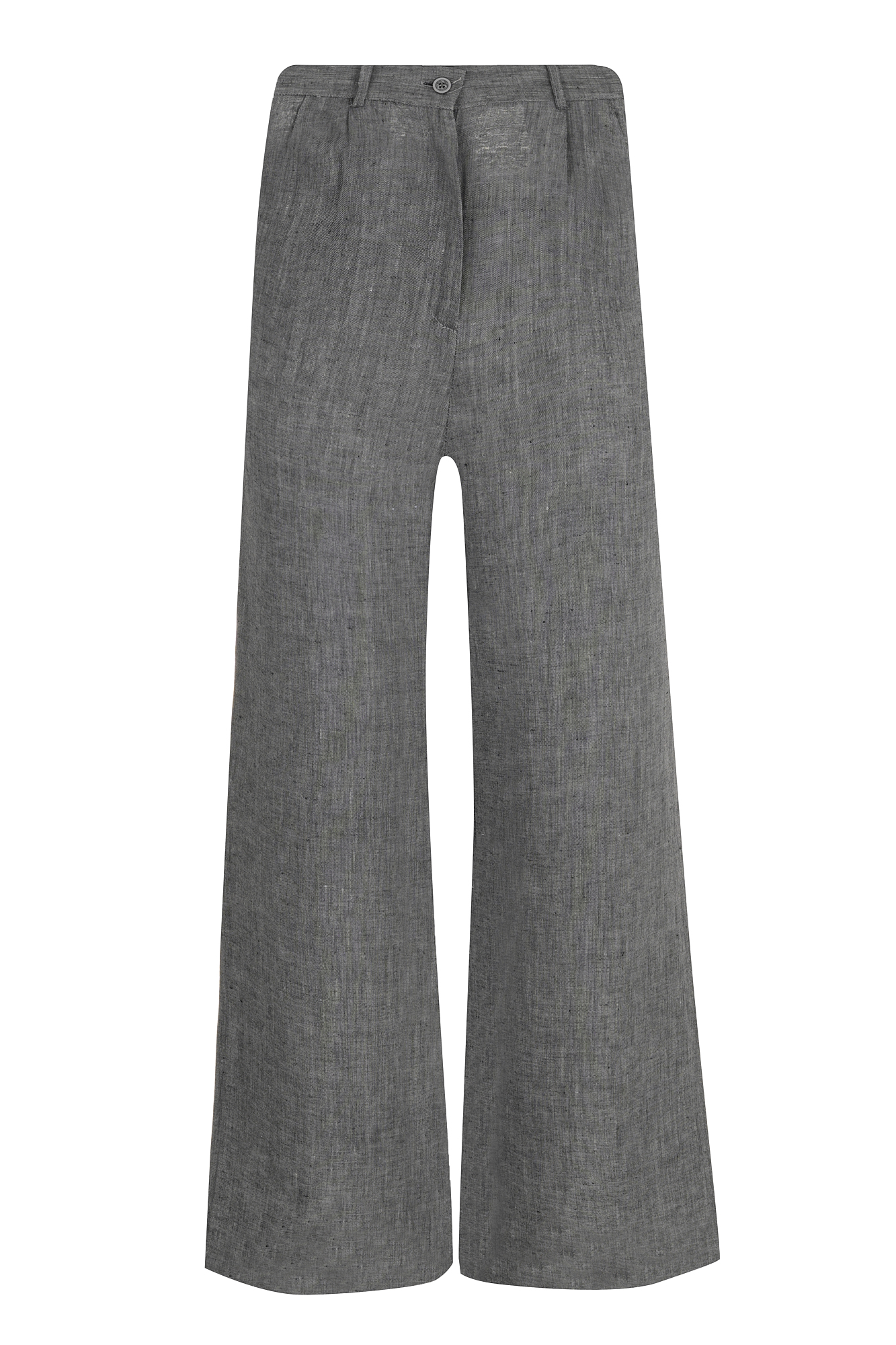 These long grey linen trousers with a high waist and wide legs are the perfect blend of minimalism and classic elegance in an Old Money style. Made from lightweight, breathable premium linen, they offer exceptional comfort while flattering and elongating the silhouette. The high waist accentuates the figure, while the wide legs provide freedom of movement and add an effortless yet regal grace.